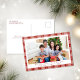 Spread holiday cheer effortlessly with our elegant red plaid Christmas postcard. This classic design features a vibrant red plaid background that perfectly complements your favourite photo, creating a festive and stylish greeting. The postcard format is ideal for quick and easy sending, with the front showcasing your cherished photo and the back offering space to personalise with your family name and a warm holiday message. Whether sending to friends near or far, this postcard combines timeless elegance with a personal touch, making it a delightful keepsake for the season.