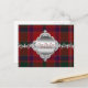 Elegant wedding save the date post card done in the traditional Stewart red, green, and blue tartan plaid. Lovely graphics of an ornate silver tone jewel band and plaque, with green custom text, decorates the front of the card. All text, on the front plaque and back side of the card, is fully customisable to read what you want.