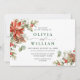 Elegant Red Poinsettia Pine Fir Watercolor Wedding Invitation