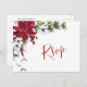 Elegant Red Poinsettia Wedding Watercolor RSVP Postcard