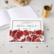 This customisable wedding guest book features red poppy flowers on a white background with a grey border. Just add your details to give it a custom feel and voila!