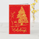 Celebrate the season with this elegant holiday card featuring a graceful reindeer and Christmas tree accented in gold. Set against a bold red background with snowfall and a refined border, it captures the warmth and joy of the holidays. Inside, a heartfelt greeting in graceful script wishes peace, joy, and cherished moments throughout the season and New Year. A timeless choice for sharing holiday cheer.
