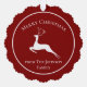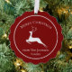 An elegant white reindeer leaps underneath Merry Christmas in white script. Personalise these red holiday ornament gift tags your family name underneath for beautiful custom presents for party guests.