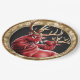 Elegant Red Reindeer Moose Gold snow merry Xmas Paper Plate