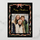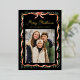 Share festive greetings with this elegant gold foil Christmas photo card featuring a watercolor greenery garland and classic red ribbon on a black background. The front showcases your favourite photo with “Merry Christmas” in whimsical gold foil script and your family name displayed just below. The back continues the black design with a second photo and space for your personalised holiday message, creating a timeless two-sided keepsake with modern holiday style.