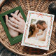 Make a statement with this elegant foil photo save the date invitation, showcasing a hand-painted red ribbon and watercolor greenery frame set against a rich evergreen background. The romantic “Save the Date” text shines in real foil, adding warmth and sophistication above your featured engagement photo. A second photo and your wedding website can be displayed on the back, making this the perfect choice for winter or holiday weddings. With its bold colour palette and luxurious finish, this design brings a festive, refined touch to your wedding announcement.
