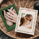 Announce your wedding with elegance and shine using this foil-stamped holiday photo save the date card. Featuring a hand-painted red ribbon and greenery frame on a warm cream background, this design showcases your engagement photo with gold foil accents for a luxurious, festive touch. "Save the Date" is displayed in a romantic handwritten script in real foil, with space on the back for a second photo and your wedding website. Perfect for winter or holiday-themed weddings, this design offers classic charm with a refined, elevated finish.