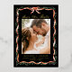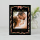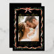 Announce your wedding in sophisticated style with this foil photo save the date invitation, featuring a hand-painted red ribbon and watercolor greenery frame on a bold black background. The phrase “Save the Date” is displayed in romantic handwritten script in real foil, adding a luminous, elegant accent above your engagement photo. The back offers space for a second photo and your wedding website. Perfect for formal winter weddings or holiday celebrations, this design blends festive charm with a dramatic, timeless finish.