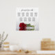 This 9 table wedding seating chart has table assignments for 90 guests at 10 people per table. The design is elegant, classy, romantic and chic, featuring a long stemmed red rose reflecting in water with waves and ripples. There is a fancy script calligraphy title reading "please find your table" as well as space for the names of the couple and the wedding date. Great way to make your reception beautiful while helping your guests find the right seat.