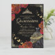 Elegant Red Rose Black Gold Butterfly Quinceañera Invitation