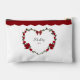 Keep your wedding day beauty essentials organized with this elegant red rose heart makeup bag. Designed for the classic bride, this accessory pouch features a lush heart-shaped wreath of vibrant red roses and a romantic tied bow. The top edge is finished with a sophisticated red scalloped border, giving it a high-end boutique feel. Perfect for holding your lipstick, touch-up powder, and "something old, something new" on your big day. This personalized pouch makes a beautiful keepsake for your honeymoon and beyond.