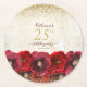 Elegant Red Rose Floral Gold 25th Birthday Party Round Paper Coaster