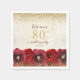 Elegant Red Rose Floral Gold 80th Birthday Party Napkin