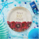These elegant floral 80th birthday party paper plates feature red roses painted in watercolor with faux gold glitter and a name and date to personalise in modern script calligraphy. Designed by Susan Coffey.