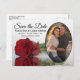 Elegant Red Rose Oval Photo Wedding Save The Date Announcement Postcard