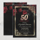 Elegant Red Roses Frame Black 50th Birthday Invitation