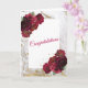 A Wedding Congratulations Card with red roses and marble. This image features a luxurious design with deep red roses embellished with fine gold accents, arranged at the top-left and bottom-right corners. The background is a stunning marble texture in white and cream tones, enhanced with swirling gold highlights.