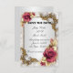 Pretty red roses and gold leaf pattern frame. This beautiful save the date card is a stylish way to announce your big day. Personalise the card by changing the text in the fields provided. You can change font style, size, and colour.