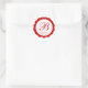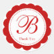 Elegant Red Scalloped Monogram Thank you Classic Round Sticker