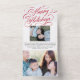 This unique holiday photo card design features a classic white background with a beautiful calligraphy script greeting in red with two photos. The inside of the card accommodates text and two photos, one large and one small horizontal photos. On the outside of the card is your return address. The photo is torn away and can be kept as a keepsake! Also, there is need to order envelopes - the outside of the card serves as an envelope!