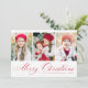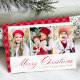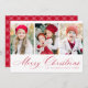 Elegant Red Script Merry Christmas 3 Photo Holiday Card