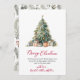 Modern Botanical Foliage Elegant Calligraphy Red Script Christmas Tree Non Photo Christmas Cards. This festive simple minimalist Christmas Holiday cards features a watercolor christmas tree with decoration gold balls, presents and a „Merry Christmas” greeting text which is written in a nice hand lettered font type in red. On the backing watercolor winter botanical foliage greenery, berries, eucalyptus leaves, pine needles and branches. This festive Custom Photo Christmas Cards are a great way to remind loved ones that you're thinking of them this Winter Holiday Season.