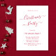 Modern Chic Calligraphy Script Minimalist Red and White Christmas Party Invitations is perfect for a simple Christmas event. Features an elegant „Christmas Party” text in a beautiful hand lettered swirly swash-tail font script in red on white background. Easy to personalise with your name and party details.