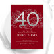 Elegant red silver 40th birthday party invitation. Customisable modern feminine design featuring roses botanical accents and faux glitter silver. Simple floral invite card perfect for a stylish female bday celebration. Personalise with your own details. Printed Zazzle invitations or instant download digital printable template.