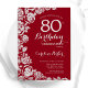 Elegant Red Silver Roses 80th Birthday Party Invitation