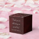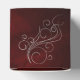 This is a stylish, rich looking wedding favour box, with your special message and your first names in silver on an elegant deep burgundy red gradient background. A pretty silver swirl finishes off the top of the box. This favour box matches the Elegant Red Silver Monogram Wedding Invitations in our store.