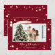 Personalized red photo Christmas cards featuring hand-lettered script and stars on a red background. Easily personalize these red starry photo Christmas cards with your favorite image, a family name and text.