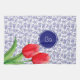 Elegant Red Tulips Spring Floral Blue Monogram Not Tea Towel