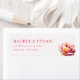 This return address label features a minimalist design with a clean white background, creating an elegant and sophisticated look. The layout includes bold, uppercase serif typography in a deep red hue for the names, paired with a delicate watercolor-style illustration of a rose in soft pink and peach tones. The overall aesthetic is romantic and understated, perfect for adding a touch of warmth to your correspondence. Ideal for those who appreciate classic beauty and simplicity, this label combines formality with artistic charm.