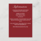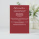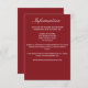 Share your wedding details in timeless style with this elegant red enclosure card, designed to coordinate perfectly with the Red Poinsettia Wedding Invitation suite. Featuring a rich red background and crisp white typography, this design offers a classic, modern look that’s perfect for winter or holiday weddings. Ideal for including reception details, accommodations, or weekend itinerary information, this card adds a refined and cohesive touch to your wedding stationery suite.