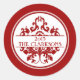 Give your holiday mail a sophisticated touch with this elegant round Christmas sticker. Designed with a bold red border and ornate damask ornament motif, this festive seal creates a classic, timeless look for the season. The centre features customisable text for your family name and year, making it perfect for personalising holiday cards, Christmas letters, party invitations, and seasonal gift packaging. Printed in rich red and white, this stylish sticker blends traditional holiday charm with modern elegance. Ideal for use as a return address seal, envelope sticker, or Christmas gift label, it adds a polished finishing touch to every holiday correspondence. Fully customisable for your family name, year, and message