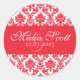 Elegant Red White Damask Wedding Favour Classic Round Sticker