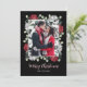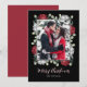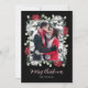 Elegant Red White Floral on Black Photo Christmas Holiday Card