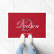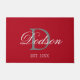 Designed with customisable dark red background and light grey monogram initial on the centre. Personalised with couple's last name in classy white calligraphy script lettering and year established in white numbers on lower front centre. Makes a great housewarming or bridal shower gift idea.
