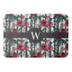 This elegant and chic bath mat features a black and white vertical striped background with beautiful red and white roses, berries, and greenery in a pretty pattern. Personalise with your own monogram letter and customise the colour and font to your liking. Perfect for freshening up your bathroom decor or as gift for a housewarming.