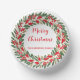 Elegant Red Wreath Holly Berries Christmas Green Paper Plate