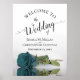 Elegant Reflecting Teal Rose Chic Wedding Welcome Poster