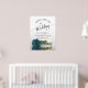 Introduce your wedding celebration in style with this stunning sign. Its design is both sophisticated and understated, with delicate script calligraphy and a graceful long-stemmed teal, turquoise or dark aqua coloured rose mirrored in a pool of water, complete with waves and ripples. This exquisite piece is the perfect touch to greet your guests on your momentous day.