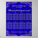 Royal blue wedding seating chart. To edit it please click "Customise" and enter our editing tool to change the info of the chart.