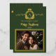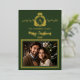Bring a look of royalty to your holiday photo mailing this year with this classy and elegant rectangular-framed one photo real gold foil "Merry Christmas" design. Features a top regal emblem crested with a crown with space for your initial and backed by a string of old-fashioned holiday lights. Back features a top assortment of gold-toned (not foil) bauble and teardrop ornaments. Composite design by Holiday Hearts Designs.