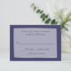 All purpose response RSVP card done in a regency midnight blue purple colour, with graphics of a silver tone edged white semi transparent text area, with custom black text. Size is small enough to fit in with all the popular invitation sizes. Customise the text to suit your needs.