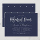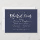 Elegant and modern silver handwritten script Rehearsal Dinner Invitations and Navy Blue, a DIY background colour.