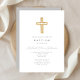 Elegant Religious Cross Grey Script Boy Baptism Invitation