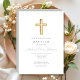 Personalised Elegant Religious Cross Grey Script Boy Baptism Invitation.