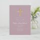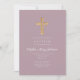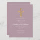 Elegant Religious Cross Purple Script Girl Baptism Invitation