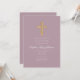 Personalised Elegant Religious Cross Purple Script Girl Baptism Invitation.